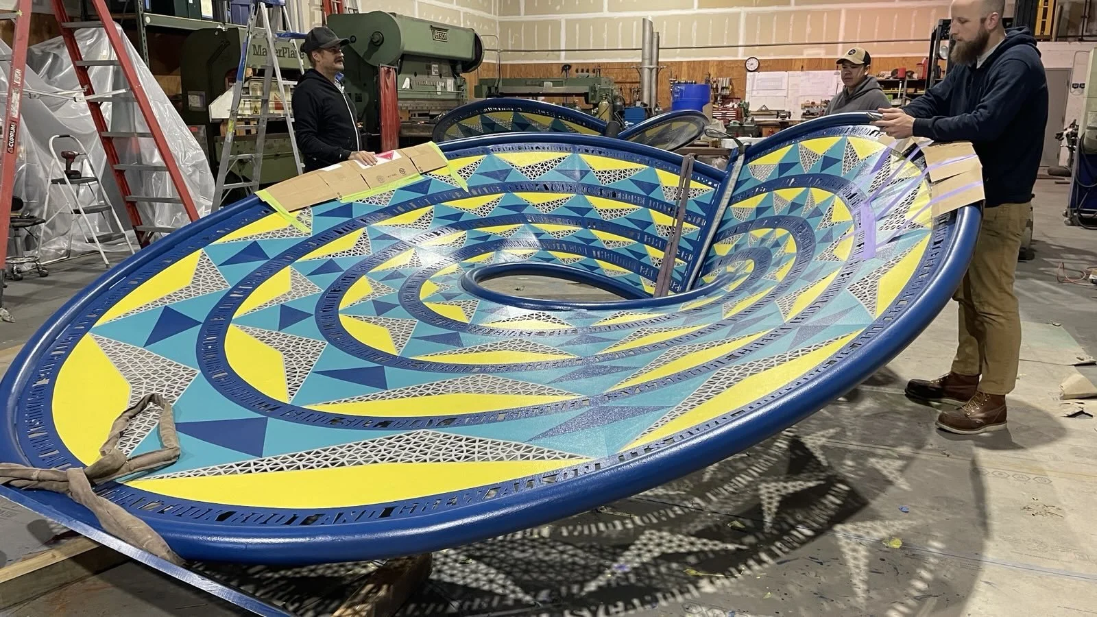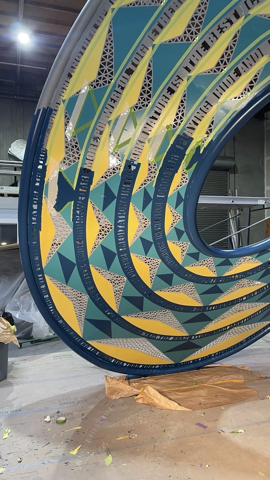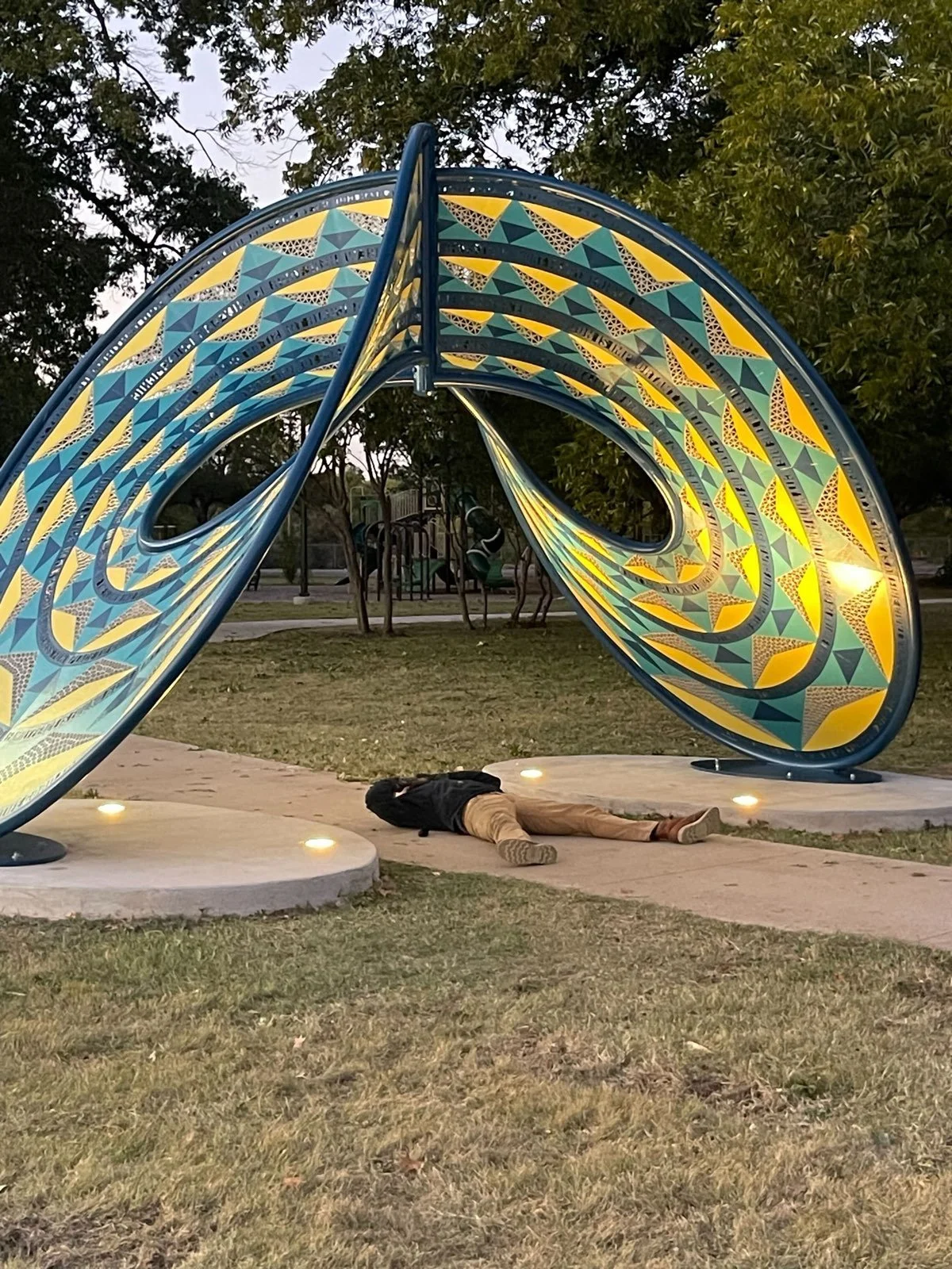 “Energetic” is inspired by the intersection of athletics and nature in the Sycamore Park/Ft. Worth area. The sculpture features words and phrases from the local residents recorded from sessions that Blessing Hancock did with the community.